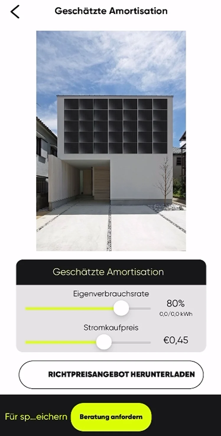 Sobald du zufrieden bist, erstellt die App ein detailliertes, unverbindliches Angebot mit Projektübersicht, Kostenschätzung, Prognose der jährlichen Energieerzeugung und ROI.
