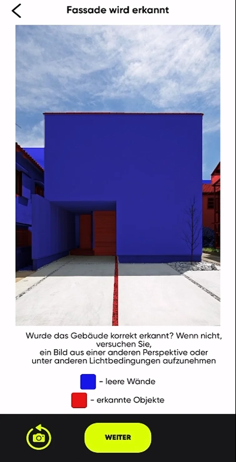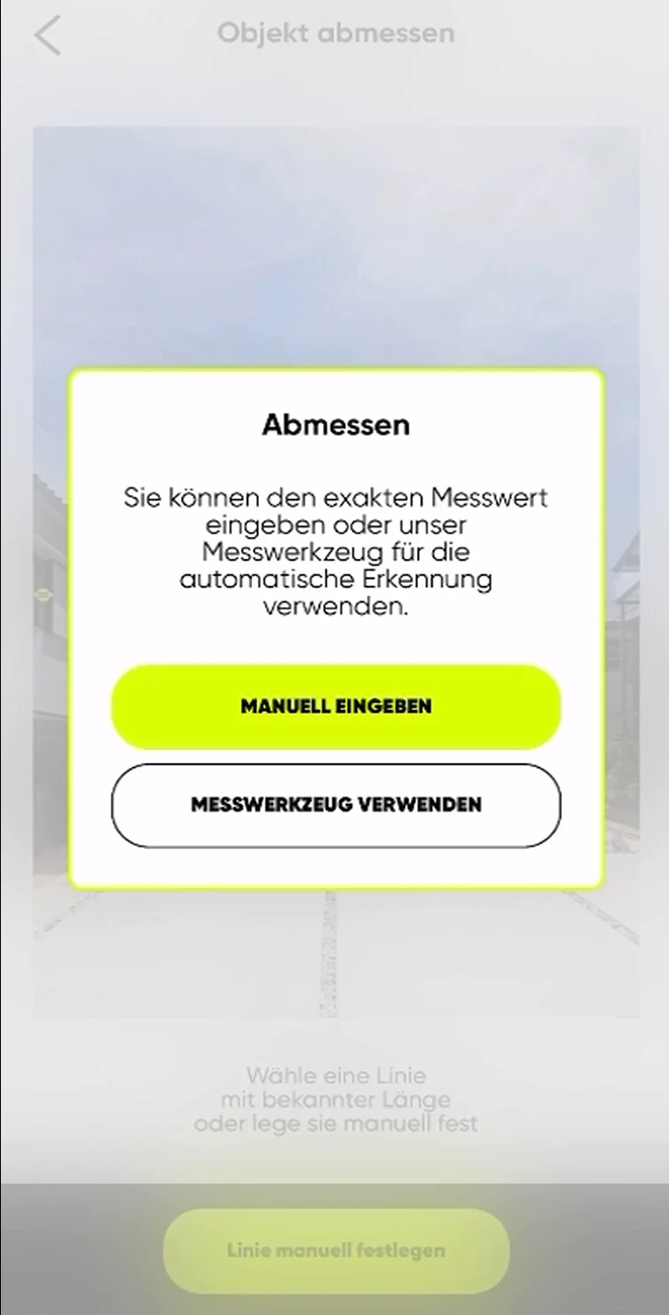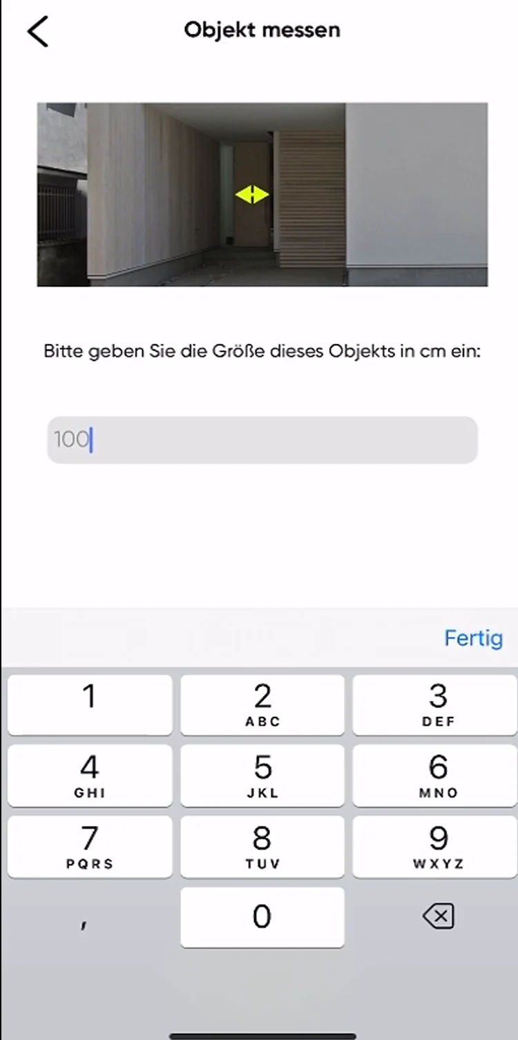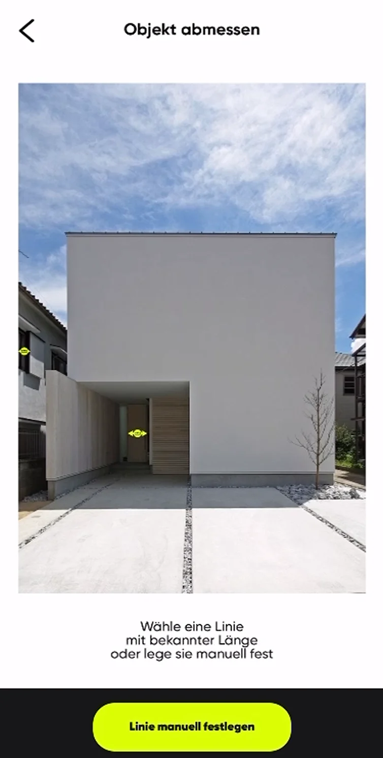 Mit dem AR-Messwerkzeug kannst du präzise erkannte Objekte vermessen, sodass die App die gesamte Fassade realitätsgetreu und genau skalieren kann.