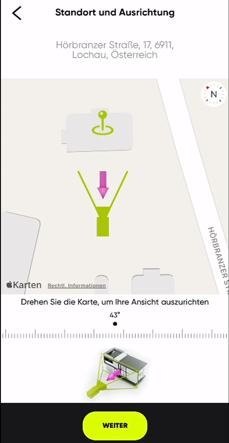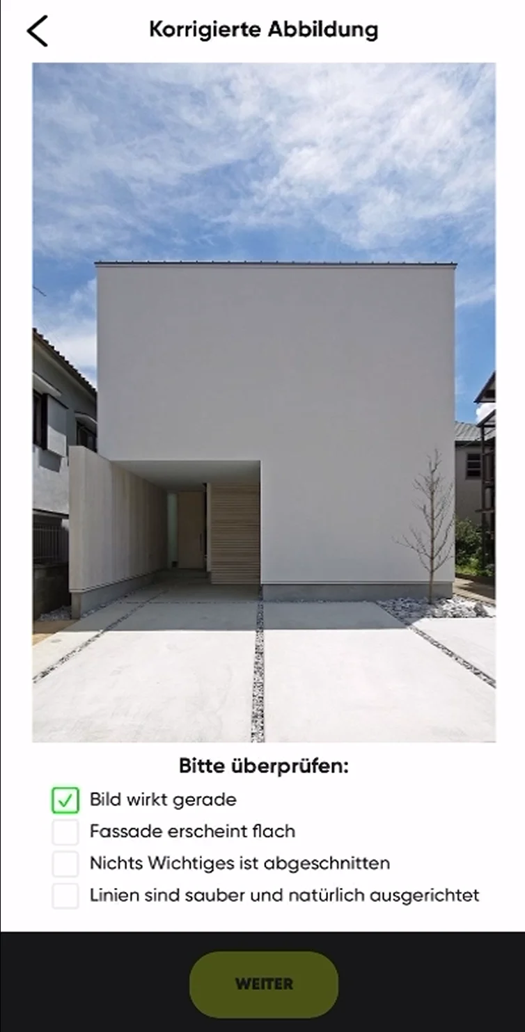 Mache ein Foto der Fassade, und die App erkennt automatisch Ausrichtung und Standort, um die Sonneneinstrahlung über das Jahr hinweg zu berechnen.